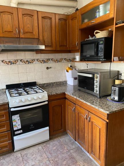 Salidas a través de puertas ventanas a jardín de 100 m2 desde comedor y living. Jardin con churrasquera y árbol de olivo. Lavandería independiente y tendedero.